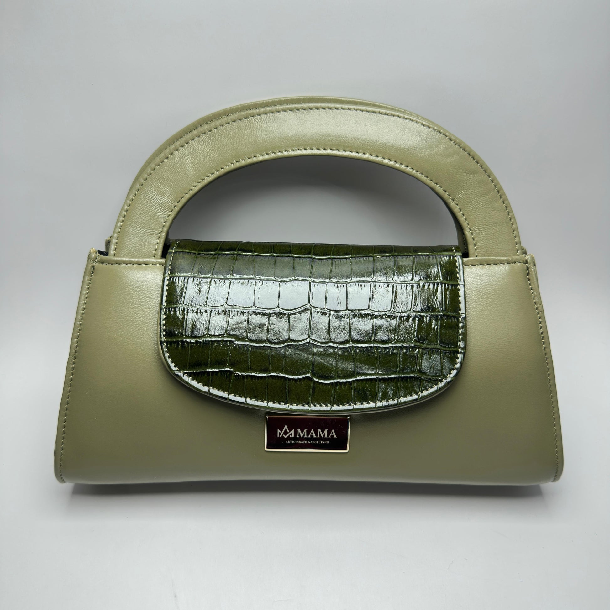 Borsa Imperia in pelle color salvia, realizzata con materiali pregiati selezionati con cura. Questo accessorio artigianale combina eleganza senza tempo e funzionalità, perfetto per chi apprezza la qualità costruttiva e il design sobrio. La tonalità salvia conferisce versatilità, adattandosi a molteplici stili e occasioni. Un pezzo che rispecchia l'eccellenza della tradizione napoletana, ideale per chi ricerca autenticità e raffinatezza nel proprio guardaroba quotidiano.